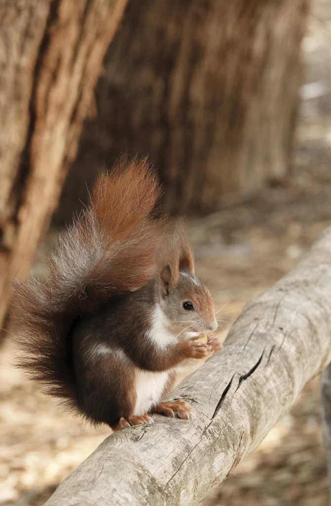 Vandaag de laatste dag dat Michel gaat rennen in Portugal. Ook mijn laatste kans om de eekhoorntjes nog een keer te zien en fotograferen. Het is rustig bij de waterplas, ook geen eekhoorn te zien, totdat Michel bijna weer terug is. Meerdere eekhoorntjes die er echt voor gingen! Poseren op het hek, op een houtblok of springend vanuit de boom. Zo leuk, voor mij!!!