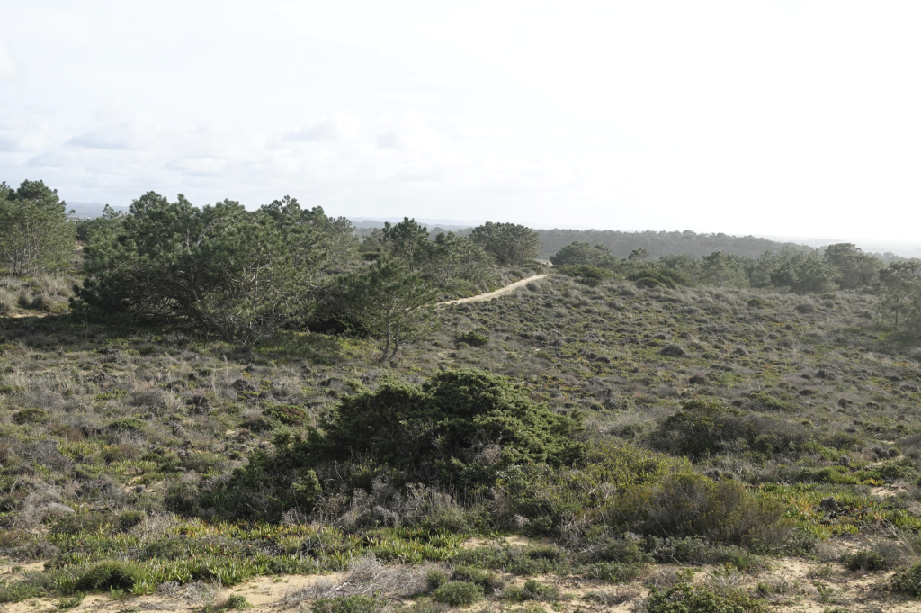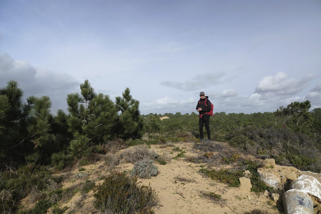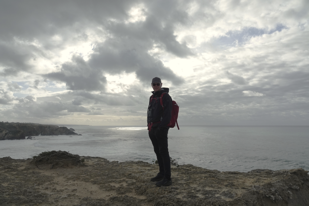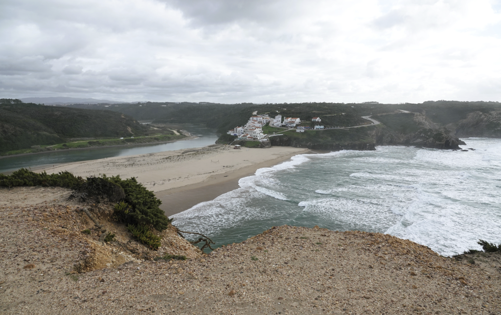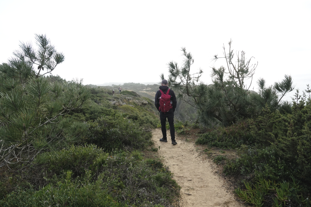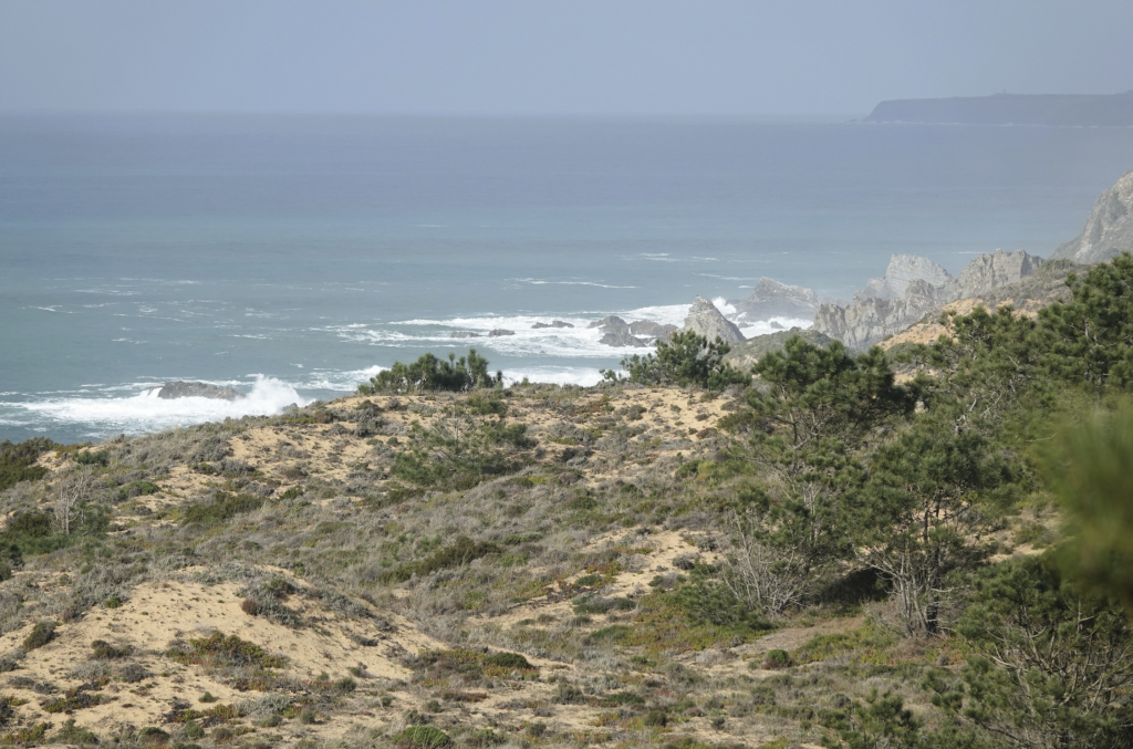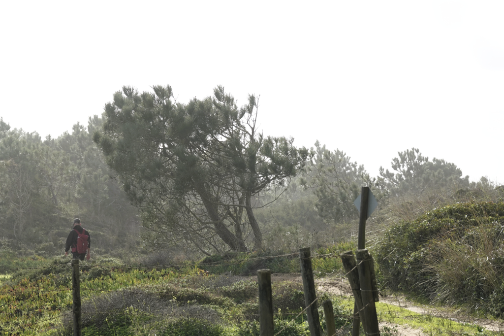 Weer prachtig uitzicht, beukende en spetterende golven, leuke vogels en voor de lach op ons gezicht een man die beneden op het strand druk aan het bellen was en de golf pas door had toen hij tot boven zijn knieën nat was.