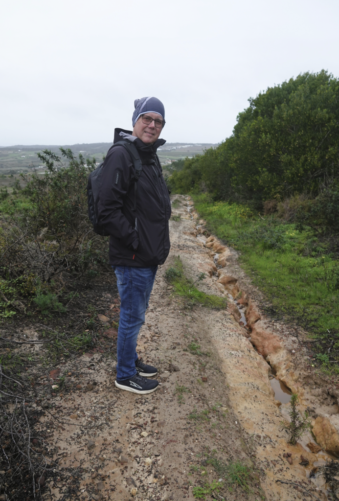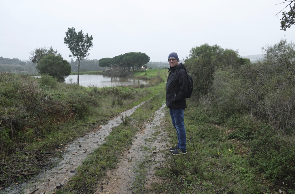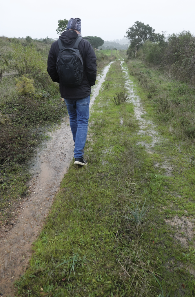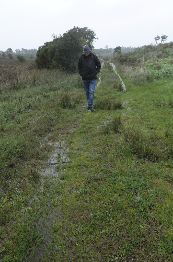 Het houdt niet op met regenen. Buienradar en vrienden, geven aan dat het droog is, maar het lijkt er niet op. We besluiten dat we gewoon gaan wandelen, dan maar nat! Rugzak inpakken, schoenen aan, jas aan en daar gaan we. O nee, toch nog niet. Ik heb dienst en word binnen een half uur 3x gebeld. Overleg, nabellen, consult invoeren, daar gaan we. O nee, toch niet de sluizen lijken weer maximaal open te gaan. Dan maar thuis lunchen, op het terras in de regen en dan gaan we echt. De temperatuur is prima. Maar we zijn in “no time” lekker nat natuurlijk. Dat wordt nog erger als we halverwege een stuk door een zompig weiland moeten. Tot mijn kuiten in de modder. Gelukkig blijven mijn schoenen aan mijn voeten zitten. Bemodderd wandelen we verder. Onderweg nog twee consulten, deze thuis uitwerken, As terug bellen en later Ruben, boodschappen halen, de was doen en de auto opladen en weer terug naar huis. Drukke dag met een wandeling van 9 km met 140 meter hoogteverschil (50 trappen). We hebben wel een patatje verdiend!