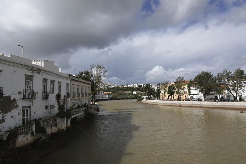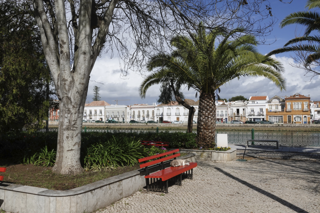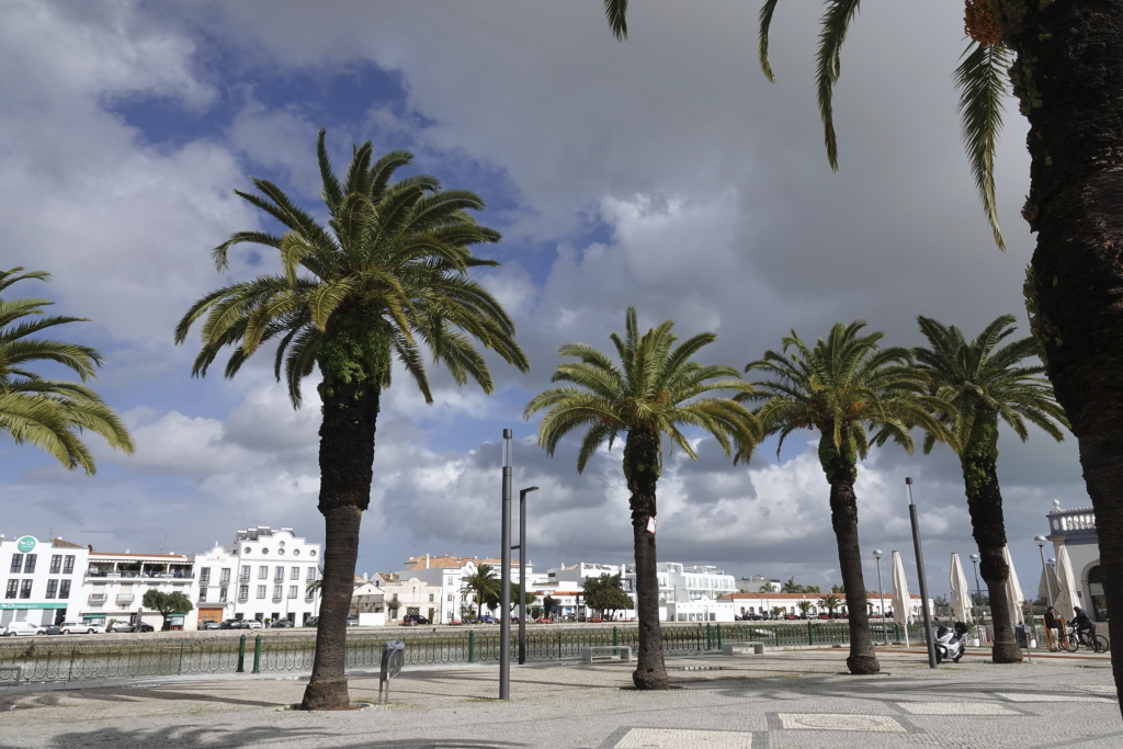 Even sporten, douchen en dan ontbijten. Er is van alles te krijgen; van champagne, tot 6 soorten taart, tot allerlei soorten fruit en broodjes, tot eieren op allerlei manieren klaar gemaakt. We laten het ons smaken. Hierna vertrekken we naar Tavira. Vorig jaar zijn we daar regelmatig geweest en het blijft een mooi plaatsje. We gaan wat andere straatjes in en worden verrast door mooie oude gebouwen, steegjes en allerlei bouwvallen. Op de kade drinken we een kop koffie en thee en wandelen dan weer terug naar de auto. De regen gaat weer starten en we willen niet te nat worden.