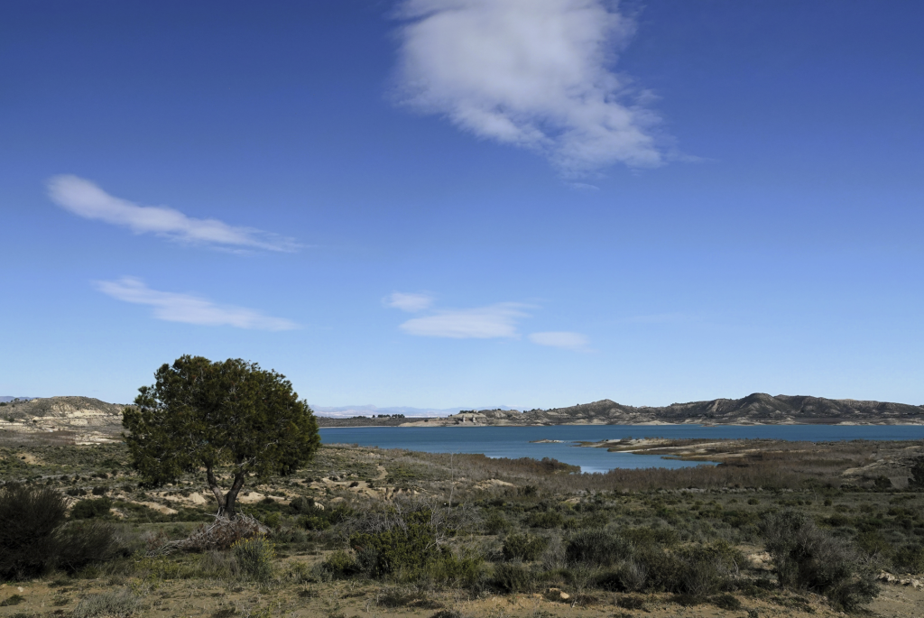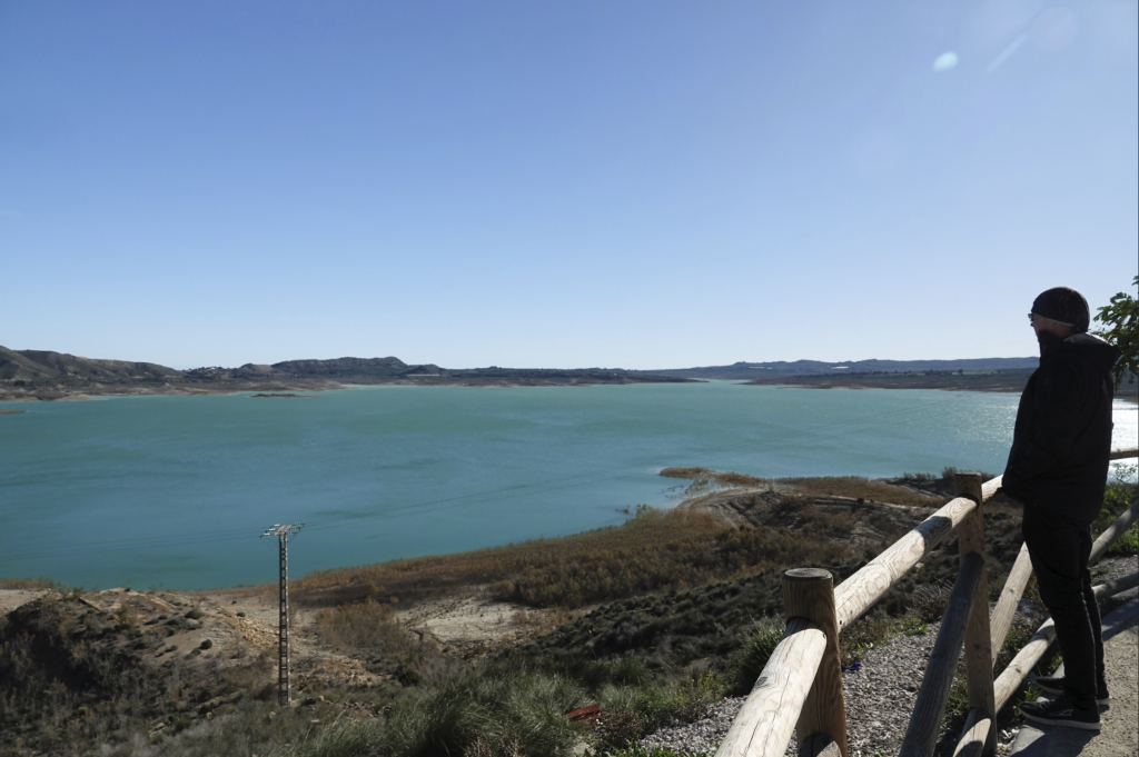 Nou ja, wandelen… Niet dus. Het was eindelijk weer droog en een zonnetje, maar KOUD, KOUD… niet lekker. Wij zijn zonder winterjas naar Spanje gekomen. Door de koude, harde wind en een temperatuur van ongeveer 3-4 graden, was het te koud om te wandelen. Steeds een stukje verder gereden met de auto, langs Embalse de la Pedrera. Dit is een wateropslag, prachtig blauw, in the middle of niks. Een klein stukje gelopen en toen weer verder op pad. Dat lees je in het volgende blog. Maar eerst nog even een foto van de zon die gisteravond met veel kleur onder ging.