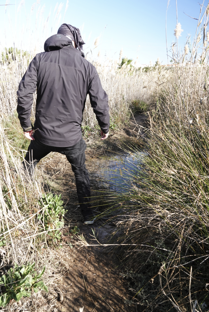 Na het gure weer bij Embalse de la Pedrera nog even langs het roze meer: Lago Rosa. De weg ernaartoe was weer lastig. Veel paden waren te nat, dan weer omkeren en op zoek naar een begaanbaar pad. Het water was echt roze. Ik dacht niet dat het roze goed op de foto zichtbaar was, maar ik heb me vergist. Ook hier niet lang gebleven door de kou.