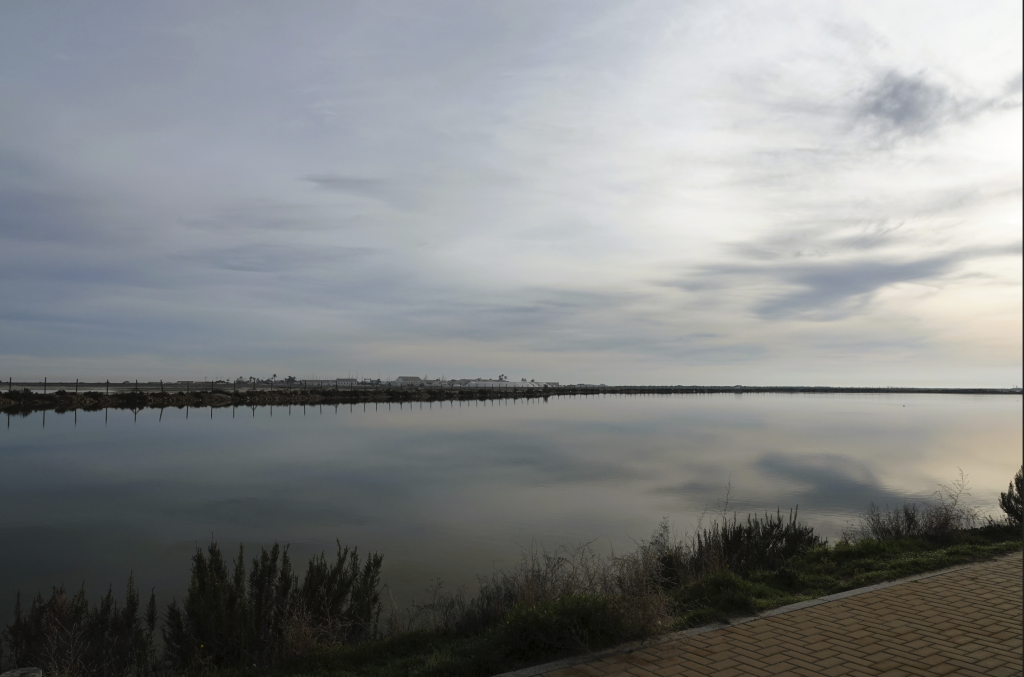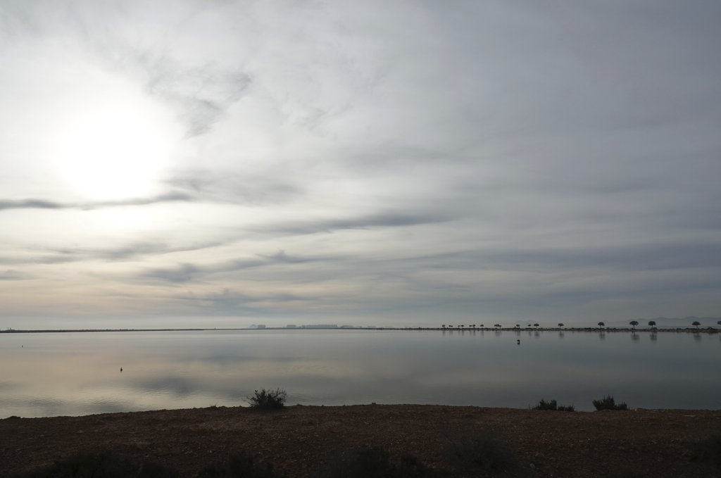 Vanmorgen vroeg wakker en vroeg op pad. Het zou een mooie en zonnige dag worden. Michel had een wandeling uitgezocht in San Pedro del Pinatar. Een kustplaats met een lange weg, met aan de ene kant water richting zee en aan de andere kant een zoutwingebied. De zon kwam nog niet echt op gang, het was koel, windstil en er hing een soort mist over het water. Alles leek stil te staan in blauw, grijze pasteltinten. We wilden 12 km gaan lopen, maar daar kwam het niet van omdat er teveel te zien en horen was. We hebben genoten van deze plaatjes, die wij live mochten beleven.